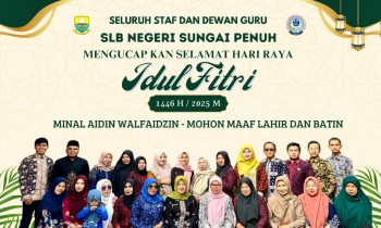 Keluarga besar SLB Negeri Sungai Penuh mengucapkan Selamat Hari Raya Idul Fitri 1 syawal 1456H, minal aidin walfaidzin mohon maaf lahir dan batin ...
